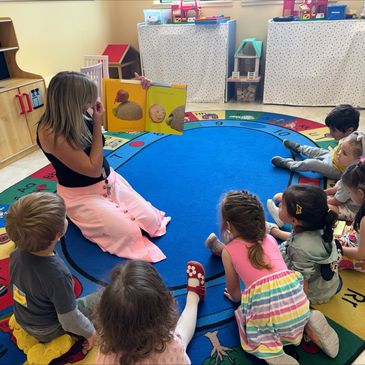 Our theme-based curriculum encourages exploration in areas of art, large and fine motor skills, music, dramatic play, science and kindergarten readiness.